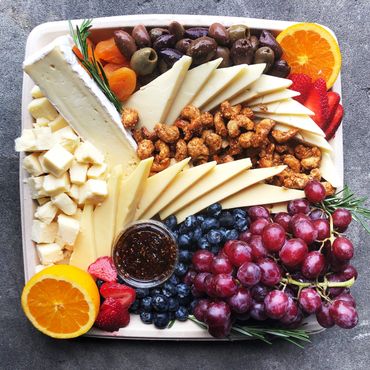 with Piquante Peppers, Cornichons, Olives, Grapes & Apple Slices